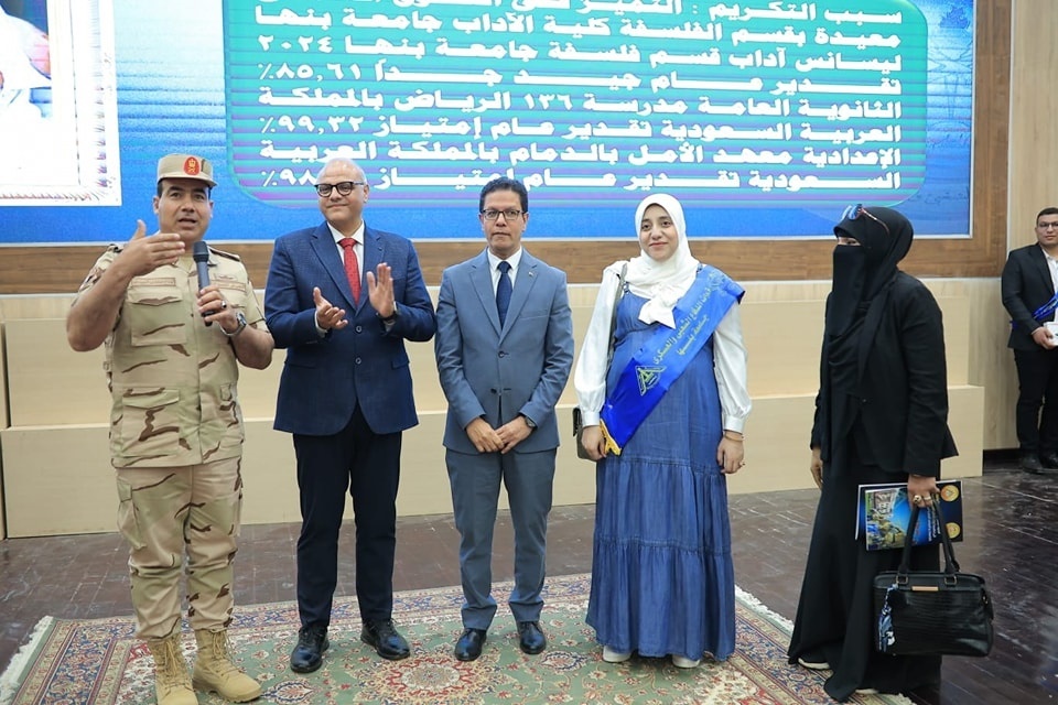 فيما أعرب اللواء أركان حرب أسامة عبد الحميد داود قائد قوات الدفاع الشعبي والعسكري، عن سعادته بتواجده في جامعة بنها أحد أهم الصروح العلمية ومنارة للمعرفة، ونقل تحيات الفريق أول عبد المجيد صقر القائد العام للقوات المسلحة وزير الدفاع والإنتاج الحربي، والفريق أحمد خليفه رئيس أركان حرب القوات المسلحة، معرباً عن فخره واعتزاز بتواجده وسط أبنائه الطلاب والذين يمثلون الغد المشرق والمستقبل الواعد حيث تعقد مصر عليهم آمالاً كبيرة في بناء الجمهورية الجديدة.