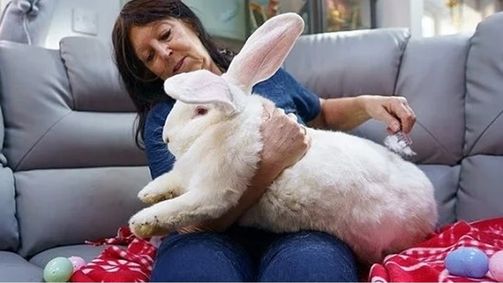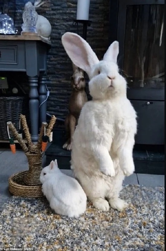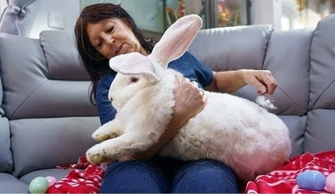 بريطانية تمتلك أرنب هولندى عملاق يصل وزنه لـ 21 رطلاً