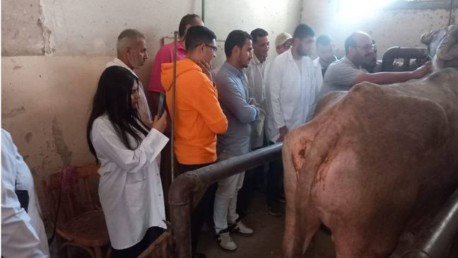 ثانيًا: في مركز التلقيح الاصطناعي بالسنبلاوين التابع لإدارة السنبلاوين البيطرية، حيث نفذت المجموعة الثانية التدريب العملي على تشخيص الحمل وإجراء عمليات التلقيح الاصطناعي، تحت إشراف الدكتور علاء الدين الشاذلي مدير إدارة السنبلاوين البيطرية، والدكتور السيد العجوز مدير إدارة التلقيح الاصطناعي بمديرية الطب البيطري.