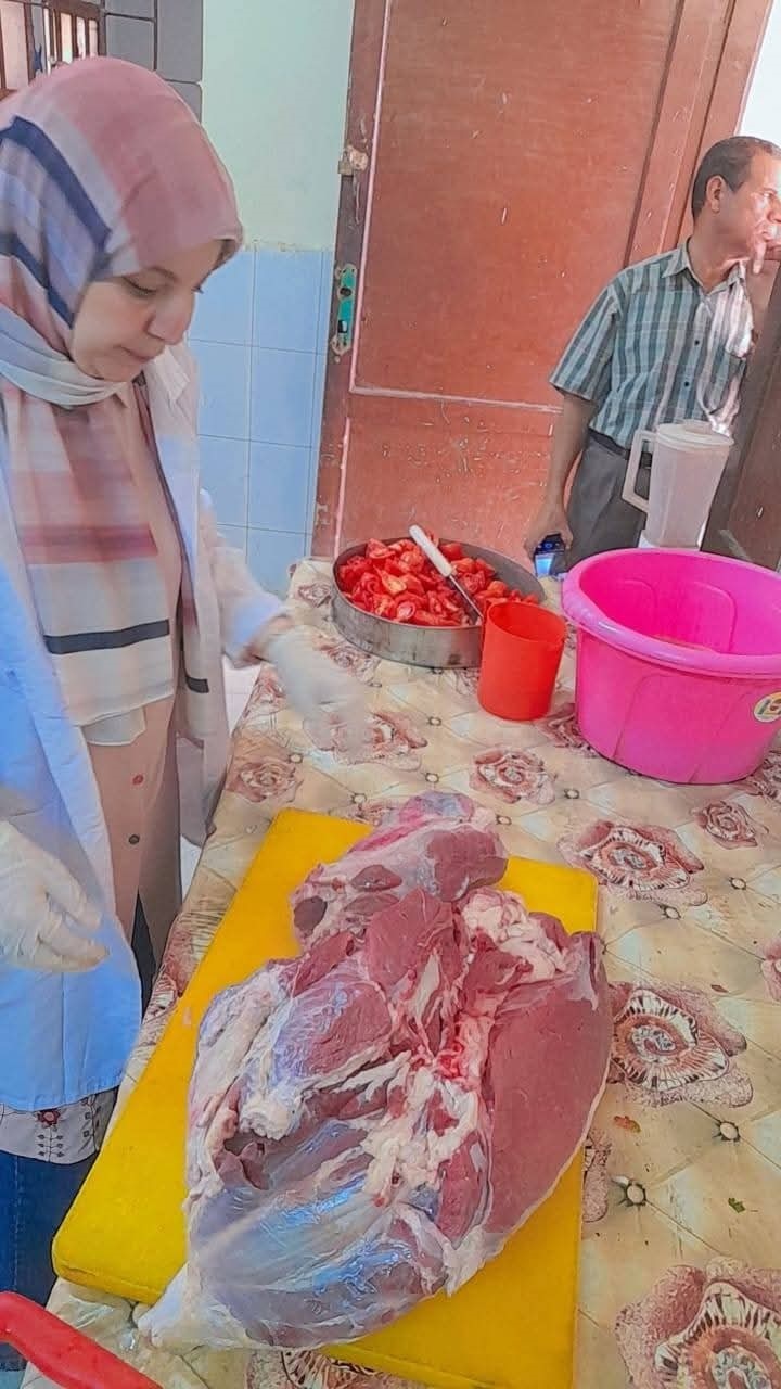 وخلال الزيارة تم الكشف على ٢٨ كيلو جرامًا من اللحوم البلدي الموردة، والتأكد من جودتها وصلاحيتها للاستهلاك الآدمي، حفاظًا على صحة الطلاب وسلامة الوجبات المدرسية المقدمة لهم.
