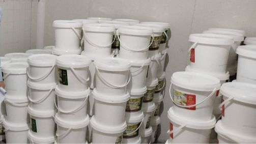 ضبط 14 شيكارة صودا كاوية وزن الشيكارة 25 كجم. ضبط 20 جركن كلور وزن الواحد 60 كجم.
