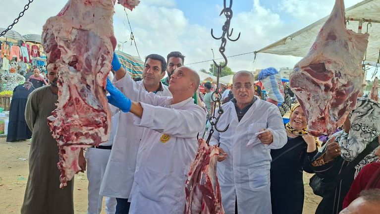 وشملت الحملة المرور والتفتيش على سوق الجمعة بمدينة العاشر من رمضان، بالتعاون مع شركاء النجاح من جهاز المدينة، والرقابة الصحية، والتموين، والجهات الأمنية (شرطة المرافق)، للتأكد من صلاحية المنتجات الحيوانية للاستهلاك الآدمي.