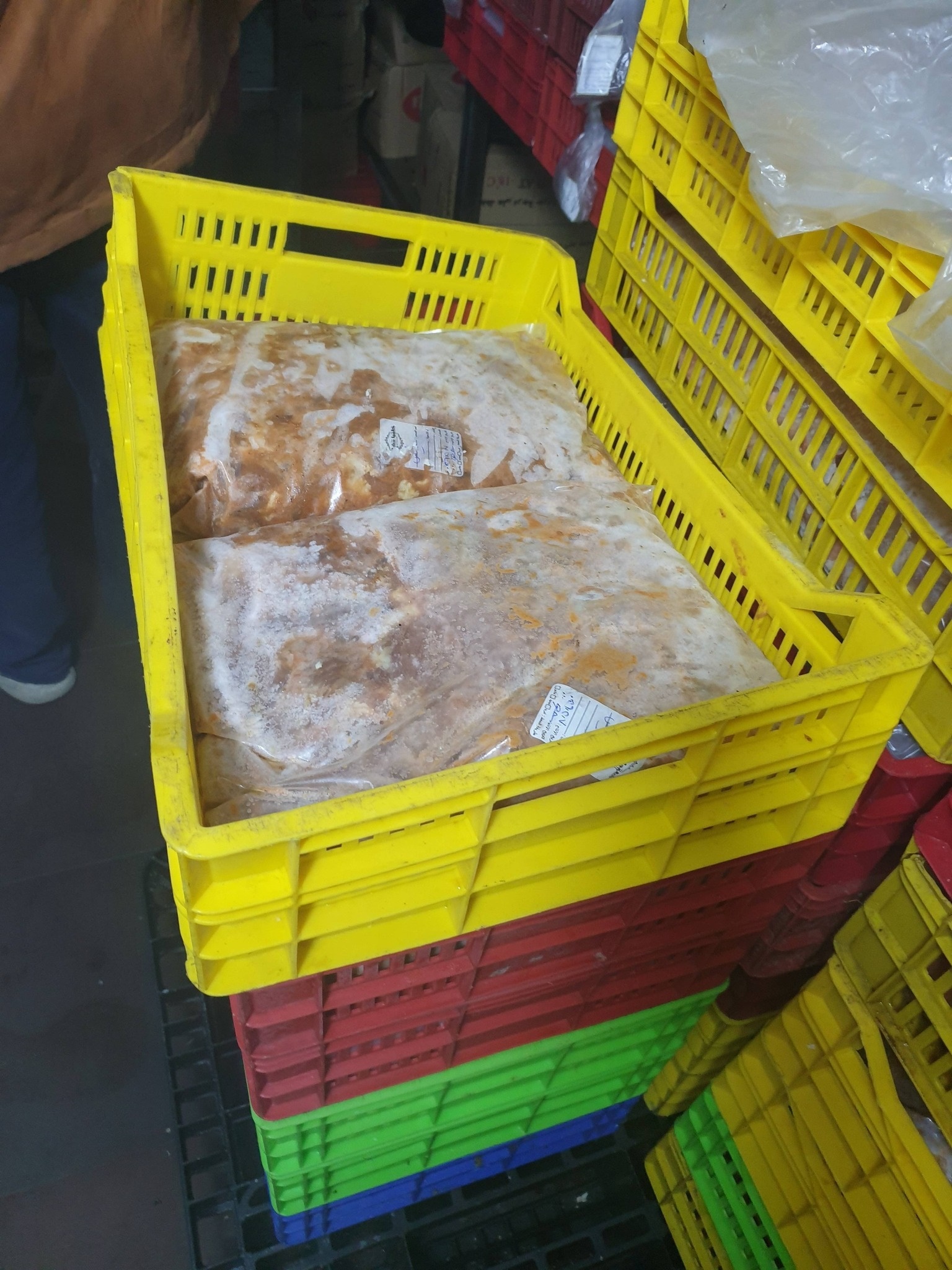 لحوم مجمدة مجهولة المصدر ومخالفة للمواصفاتدجاج مفروم مجمد بدون بيانات