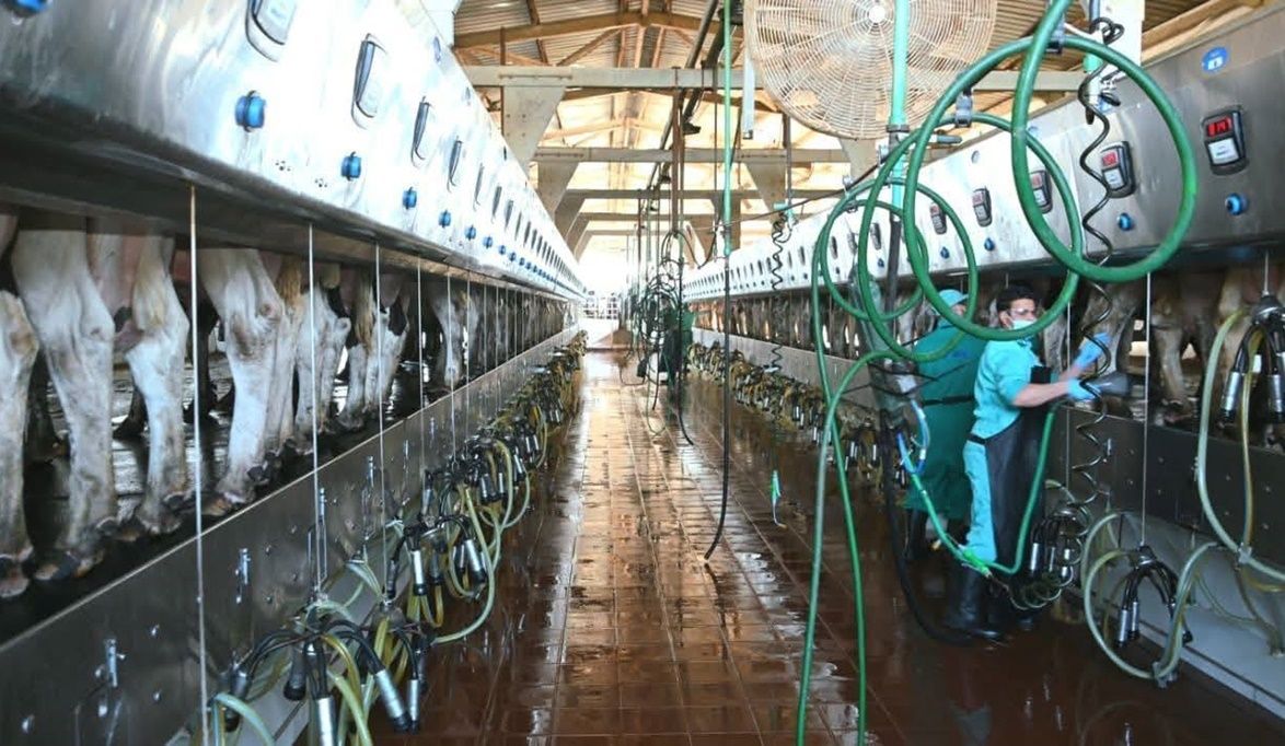 وتضم المزرعة نحو 6000 رأس ماشية من سلالة “هولشتاين فريزيان” المعروفة عالميًا بارتفاع إنتاجيتها من الألبان، حيث ارتفع متوسط إنتاج البقرة الواحدة من 25 لترًا يوميًا عند بدء المشروع إلى نحو 35 لترًا يوميًا حاليًا، وهو ما يعكس كفاءة نظم الإدارة والتغذية والرعاية البيطرية.