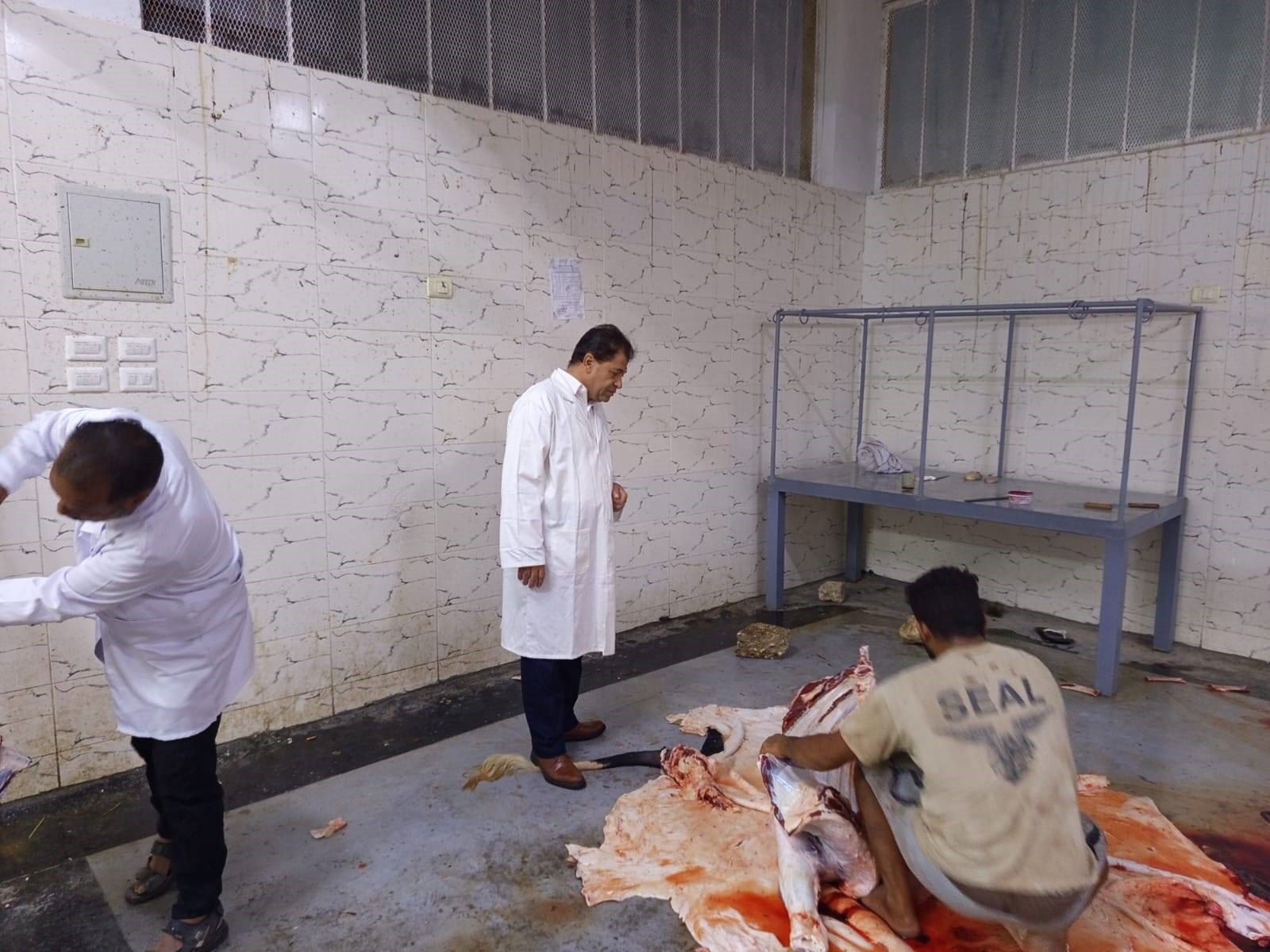 بدأت الجولة بمتابعة سير العمل داخل مجزر أرمنت والاطمئنان على إجراءات الكشف الطبي البيطري على الذبائح لضمان سلامتها قبل طرحها للمواطنين.