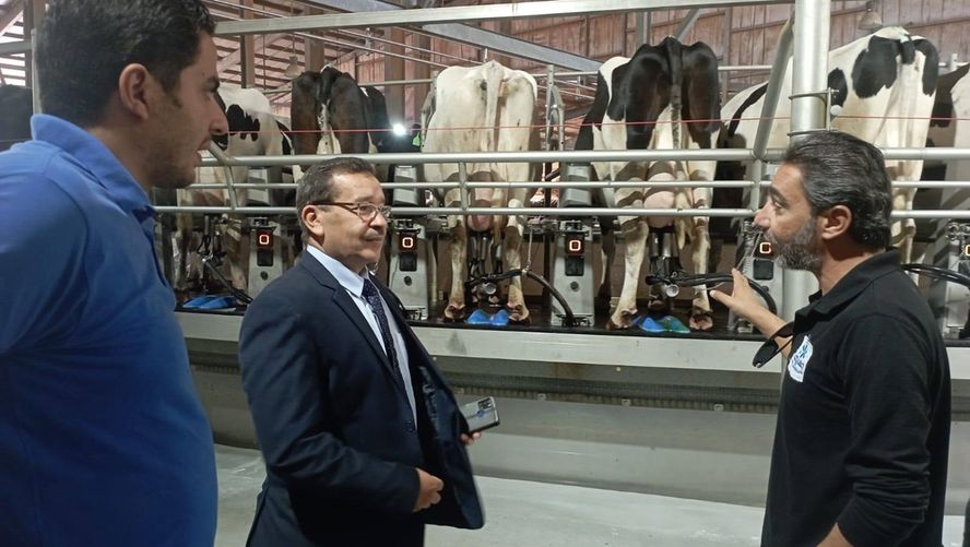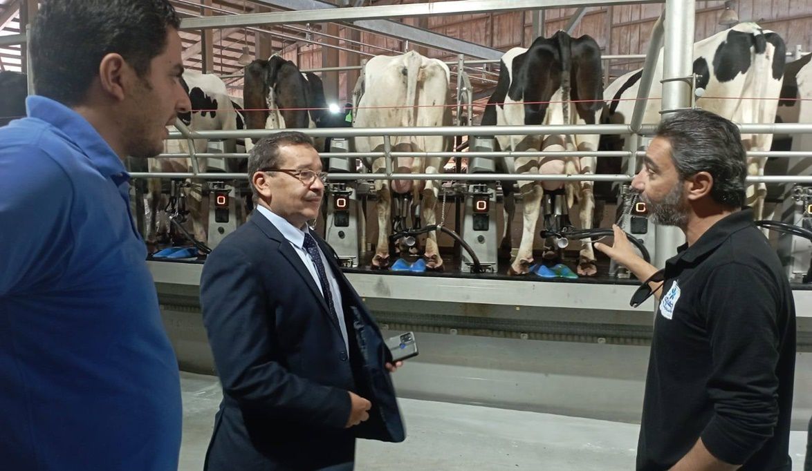 وخلال الزيارة، اطلع وكيل الوزارة على معمل التحاليل بالمزرعة، كما تفقد المحلب الآلي الذي يضم 80 نقطة حلب تتيح حلب 80 رأس ماشية في وقت واحد، إلى جانب المرور على حظائر الماشية ومتابعة نظم التغذية والرعاية الصحية للحيوانات.