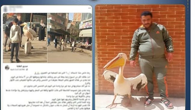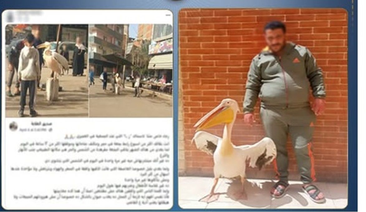 فى إطار كشف ملابسات منشور مدعوم بصور تم تداوله بمواقع التواصل الإجتماعى يتضمن التضرر من القائم على إدارة أحد المحال لبيع الأسماك لقيامه بتكبيل طائر "بجعة" أمام المحل لجذب الزبائن بالغربية بالمخالفة للقانون .