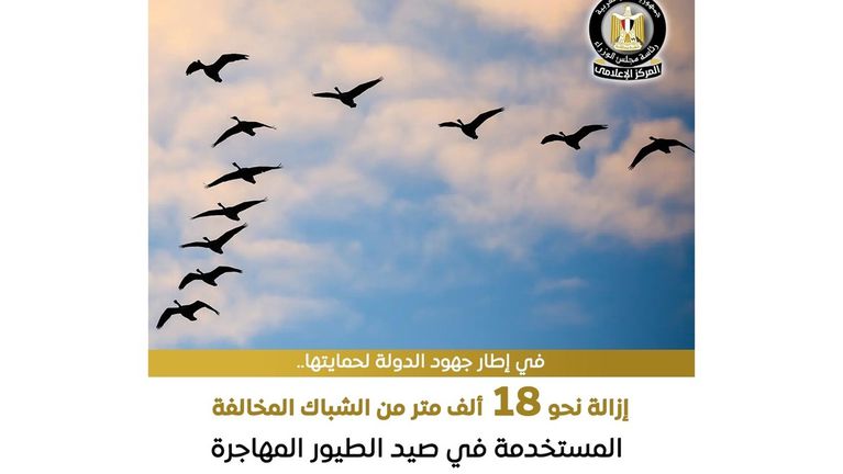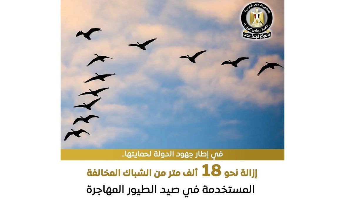 في إطار الاحتفال باليوم العالمي للطيور المهاجرة لعام 2025، الذي يقام تحت شعار "المساحات المشتركة: نحو مدن ومجتمعات صديقة للطيور"، أعلنت وزارة البيئة عن نجاح محميات المنطقة الشمالية في إزالة نحو 18 ألف متر من الشباك المخالفة المستخدمة في صيد الطيور المهاجرة، بالإضافة إلى مصادرة عدد من الأجهزة والمعدات المخالفة.