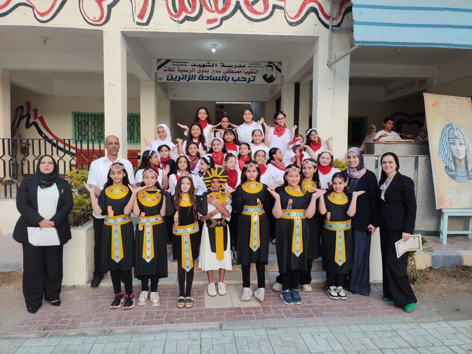 المدارس بملابس فرعونية ترمز إلى عراقة الأمة المصرية، بينما أكد مدير إدارة وسط