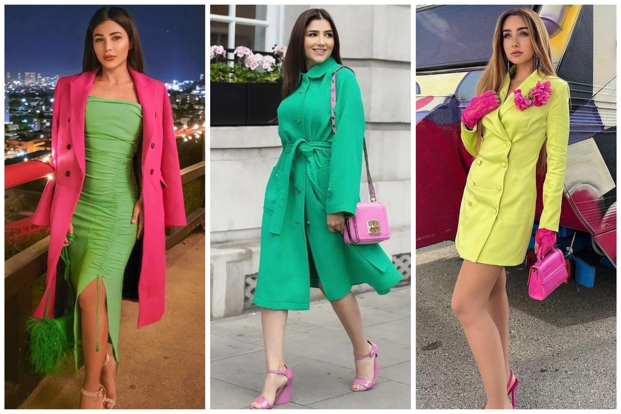 1. الوردي والأخضر الليموني: إطلالة شقيّة ونضرة