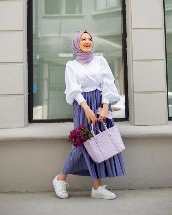 يعبر البنفسجي البارد (Cool Purple) عن النقاء مع عمق يميزه، وعندما يُجاور الأبيض الثلجي (Snow White)، يصبح المظهر هادئًا، نظيفًا، وعصريًا بامتياز. هذا التنسيق مثالي للخروجات الصباحية أو السهرات الهادئة على البحر، خاصة إذا كانت الأقمشة خفيفة ومتحركة كالشيفون أو الكتان، مع لمسة فضية في الإكسسوارات تزيدها رقيًا.