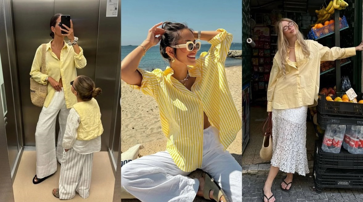 عاد اللون الزبدي (Butter Yellow) بقوة هذا الموسم، خاصة في تنسيقات النهار, وعندما يتقاطع مع الأزرق السماوي الفاتح (Light Sky Blue)، ينتج عنه مظهر يشبه صباحات العطلة الهادئة, هذا التنسيق يناسب الإطلالات المريحة، خصوصًا مع الجينز أو الأقمشة القطنية الخفيفة، ويفضّله مصممو الأزياء في الإطلالات الهادئة التي تُعانق الضوء الطبيعي.