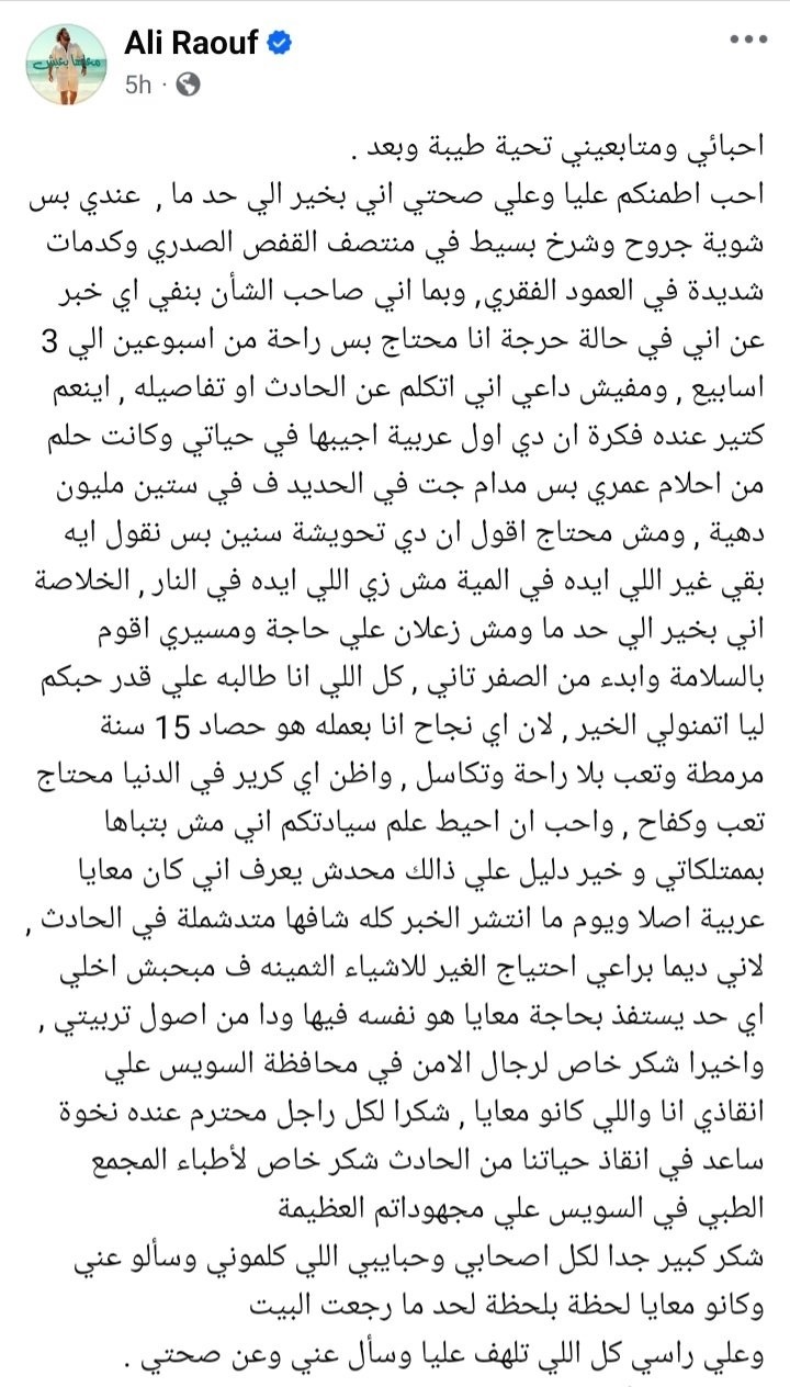 جمهوره وزملائه في الوسط الفني.أول تعليق من علي رؤوف بعد الحادث