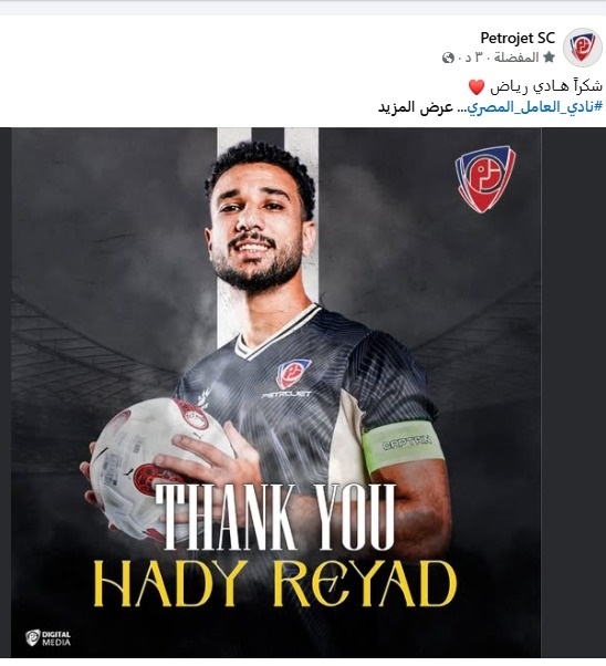 وجه نادي بتروجت الشكر لمدافعه هادي رياض، عقب إتمام انتقاله إلى النادي الأهلي، بعد التوصل إلى اتفاق نهائي بين الطرفين على كافة تفاصيل الصفقة، خلال فترة الانتقالات الشتوية الحالية.