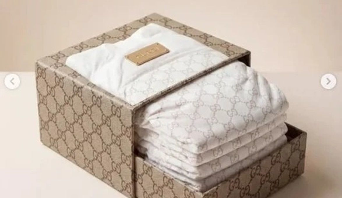 وكانت انتشرت في الفترة الأخيرة مجموعة من الصور لحفاضات أطفال من إنتاج جوتشى بسعر 490 دولارا، وأنها مصممة من مواد فاخرة مثل القطن العضوى وطبقات مادة مضادة للبكتيريا.