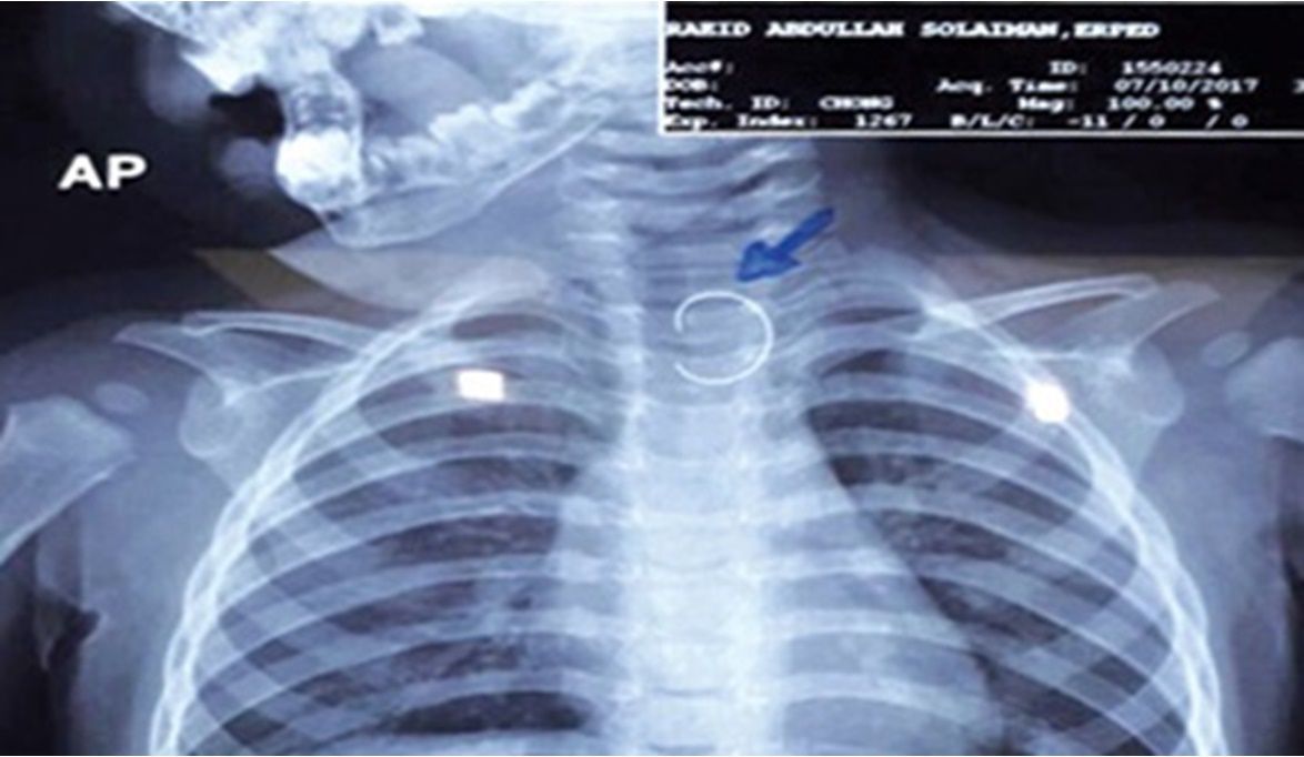 كشف الدكتور محمد متولي، نائب مدير مستشفى بنها التخصصي للأطفال، تفاصيل حالة طفلة تبلغ من العمر عامًا وسبعة أشهر ابتلعت دبوسًا صغيرًا، عالقًا في المريء منذ ستة أشهر، ما تسبب في كحة مستمرة وأعراض متفرقة لم يستطع أحد تحديد سببها.