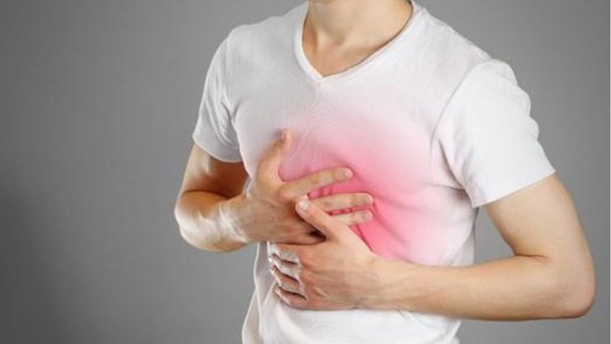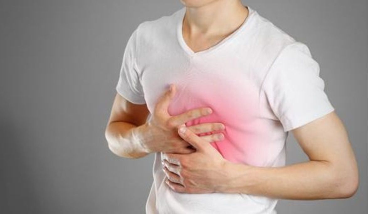 في الجزء العلوي من البطن أو الصدر، وقد يمتد أحيانا إلى الحلق.