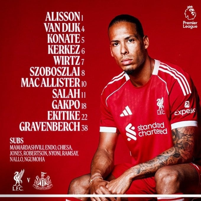 حراسة المرمى: أليسونالدفاع: فان دايك، كوناتي، كيركيز، سوبوسلاي