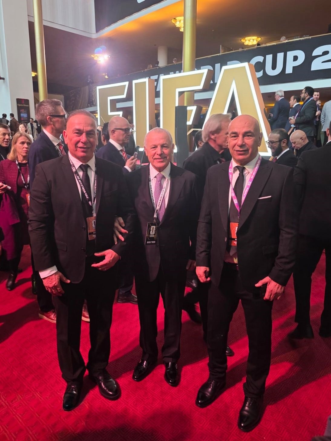 محمد زيدان يحضر قرعة كأس العالم بصحبة أبو ريدة والتوأم.
