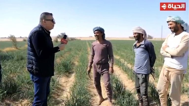 والتقي الليثي من خلال فقرة سيارة المفاجأت مع عدد من الاشخاص يعملون في الزارعة ويقفون في الأرض الزراعية ، ويزرعون بصل وهم من بني سويف والكرم الأحمر .