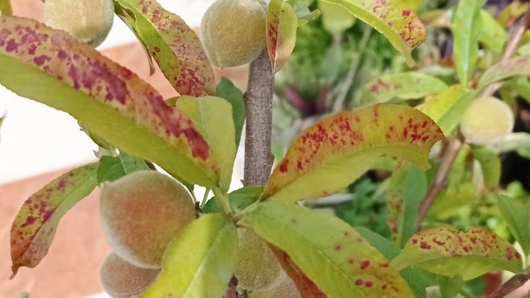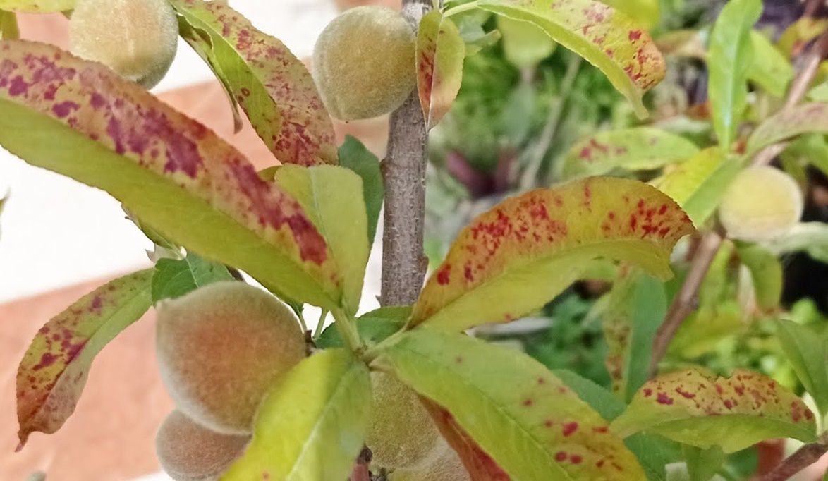 تنتقل الأبواغ منه إلى أشجار الخوخ وتبدأ الإصابة