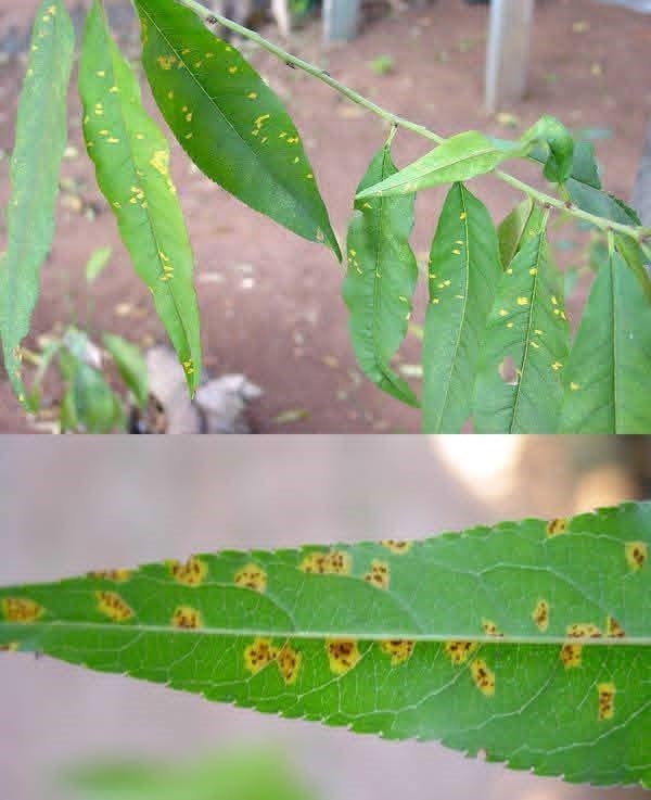 من أخطر الأمراض الفطرية التي تهدد إنتاج الخوخ والمشمش مرض صدأ الخوخ (Peach Rust) يسبب ضعف الأشجار وانخفاض المحصول، نتيجة تساقط الأوراق مبكرًا قبل دخول الأشجار في طور السكون، مما يؤثر على تخزين الكربوهيدرات وتكوين العيون المثالية للموسم التالي.