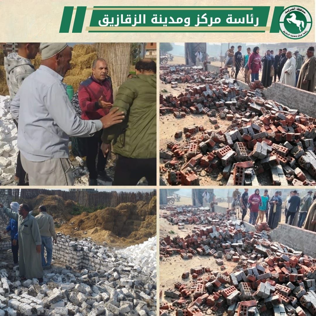 الزقازيق: إزالة حالتي بناء مخالف بالطوب الدبش في "الطيبة" و"أم الزين" بمساحة 80 مترًا مربعًا خارج حدود الحيز العمراني، بالإضافة إلى إزالة سور مبني بالمخالفة للقانون، تحت إشراف الأستاذ شعبان أبو الفتوح، رئيس المركز.