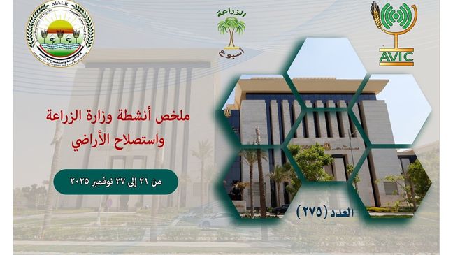 أصدر مركز المعلومات الصوتية والمرئية بوزارة الزراعة واستصلاح الأراضي، "الانفوجراف الاسبوعي" في نسخته رقم 275 حول الحصاد الاسبوعي لأهم أنشطة الوزارة، خلال الاسبوع الماضي في الفترة من 21 وحتى 27 نوفمبر الجاري، كما أصدر المركز ايضا ملخصا بالفيديو، حول انشطة الوزارة خلال نفس الفترة.