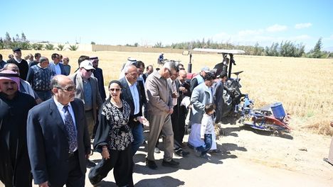 وخلال الجولة، استعرض وكيل وزارة الزراعة جهود تطوير وتنمية القطاع الزراعي بالمحافظة، خاصة التوسع في الحقول الإرشادية للقمح، والتي تم دعمها بتقاوي مجانية ونصف مدعمة من خلال الجمعيات الزراعية، بما يسهم في نقل الخبرات الحديثة للمزارعين وزيادة الإنتاجية.