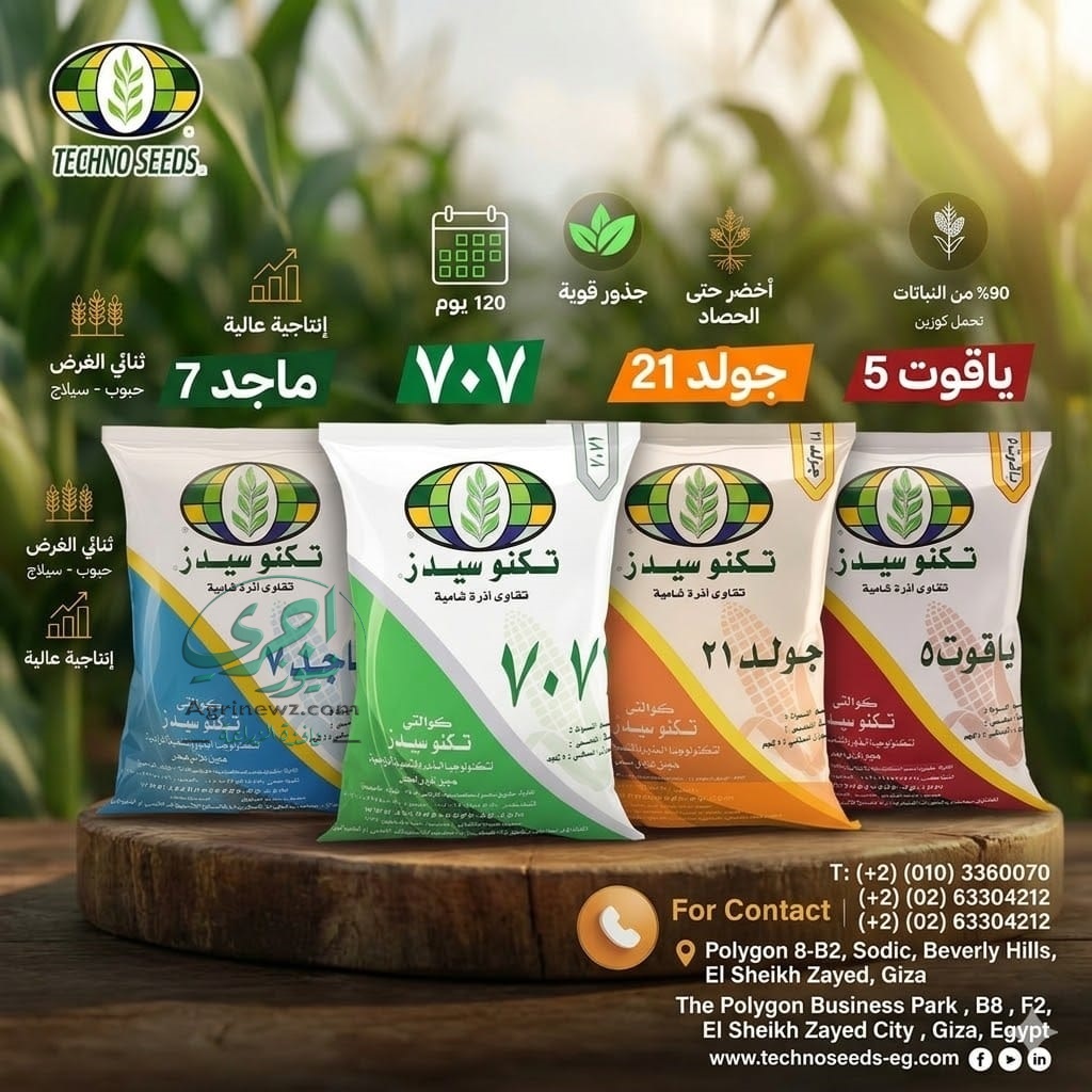 أعلنت شركة "تكنوسيدز" (Techno Seeds) لتكنولوجيا البذور والتنمية الزراعية عن قائمة أصنافها المعتمدة لموسم الذرة الحالي، والتي تضم مجموعة من الابتكارات الوراثية المصممة لتعظيم ربحية المزارع المصري وتلبية احتياجات السوق المحلي.