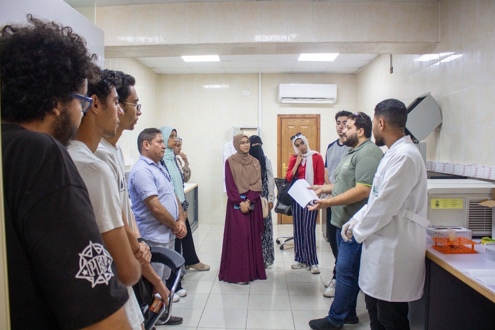 وقامت عبداللاه بإستعراض دور المعمل وما يقدمه من خدمات مختلفة وأهمها تحليل العينات من المنتجات الزراعية والغذائية والبيئية من الصادرات والواردات والأسواق المحلية وقامت بشرح مفصل للطلاب عن أهمية استغلال الفرص المتاحة لاكتساب الخبرات وتطوير المهارات عن طريق التدريب المستمر والمعمل أحد أهم الجهات المتخصصة في مجال فحص الملوثات الغذائية وأحد أهم بيوت الخبرة في منطقة الشرق الأوسط في سلامة الغذاء والتي تضيف لهم الكثير من الخبرات مما يؤهلهم لسوق العمل.