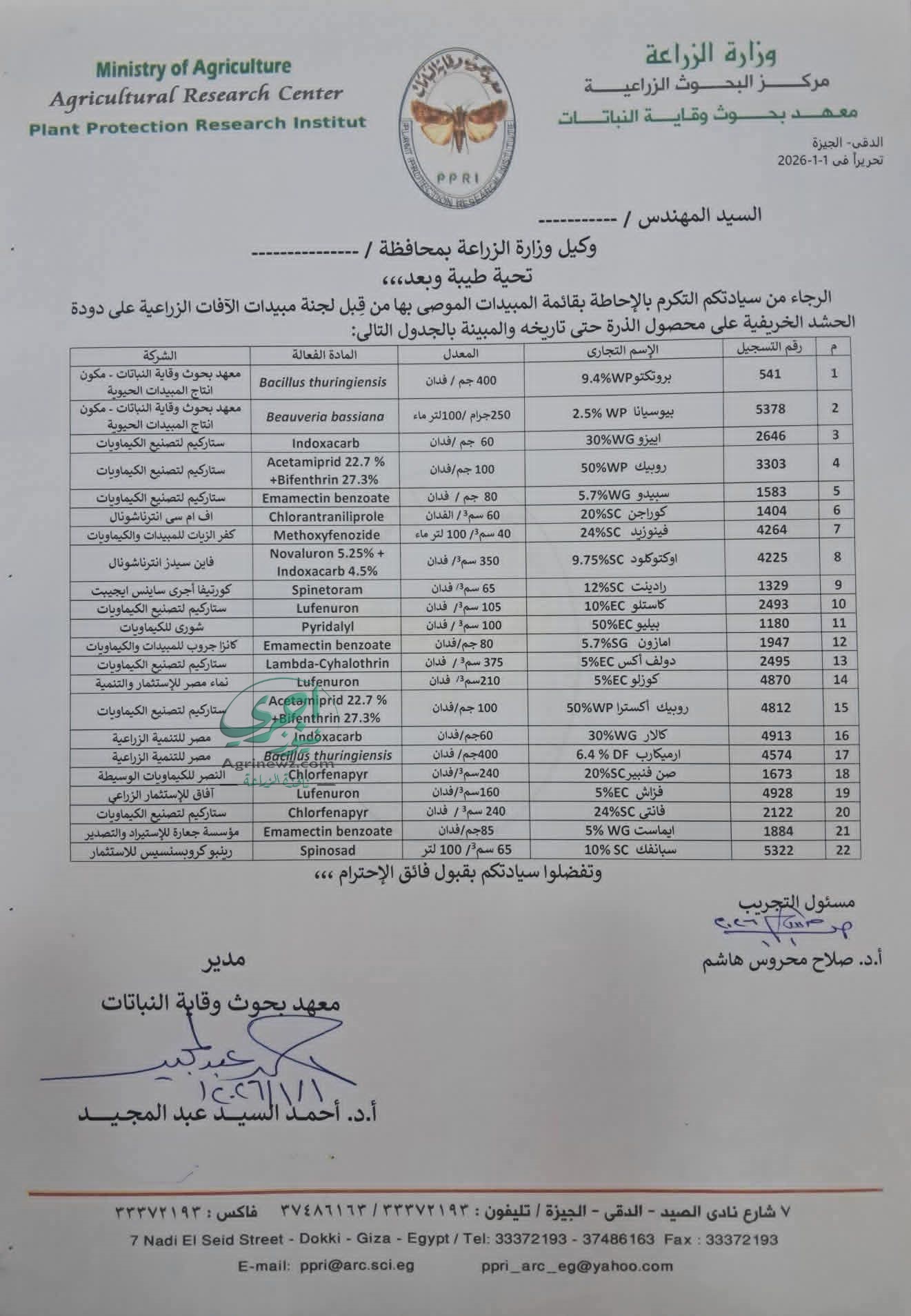 تأتي هذه القائمة كمرجع رسمي للمزارعين لضمان استخدام مركبات آمنة وفعالة، وتجنب المبيدات المغشوشة التي قد تضر بالمحصول والتربة، خاصة مع اقدم الموسم الصيفي الذي تنشط فيه هذه الآفة.
