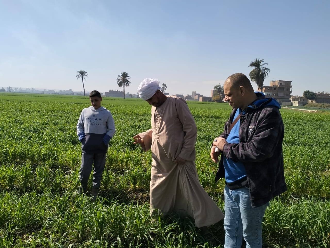 وأضاف أن اللجنة ضمت الدكتور أحمد عبد العال رئيس المكافحة الحقلية بالإدارة العامة للمكافحة، والمهندس عبد النعيم فوزي أخصائي القمح بإدارة الإرشاد الزراعي، والدكتور مصطفى عمر الباحث بمركز بحوث القمح، حيث جرى الاطمئنان على خلو المحاصيل من أي إصابات أو أمراض قد تؤثر سلبًا على جودة وإنتاجية المحصول.
