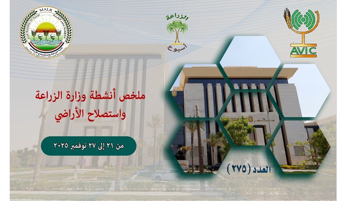 أصدر مركز المعلومات الصوتية والمرئية بوزارة الزراعة واستصلاح الأراضي، "الانفوجراف الاسبوعي" في نسخته رقم 275 حول الحصاد الاسبوعي لأهم أنشطة الوزارة، خلال الاسبوع الماضي في الفترة من 21 وحتى 27 نوفمبر الجاري، كما أصدر المركز ايضا ملخصا بالفيديو، حول انشطة الوزارة خلال نفس الفترة.