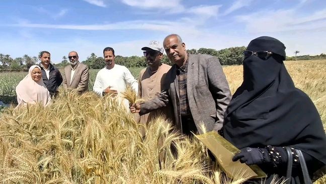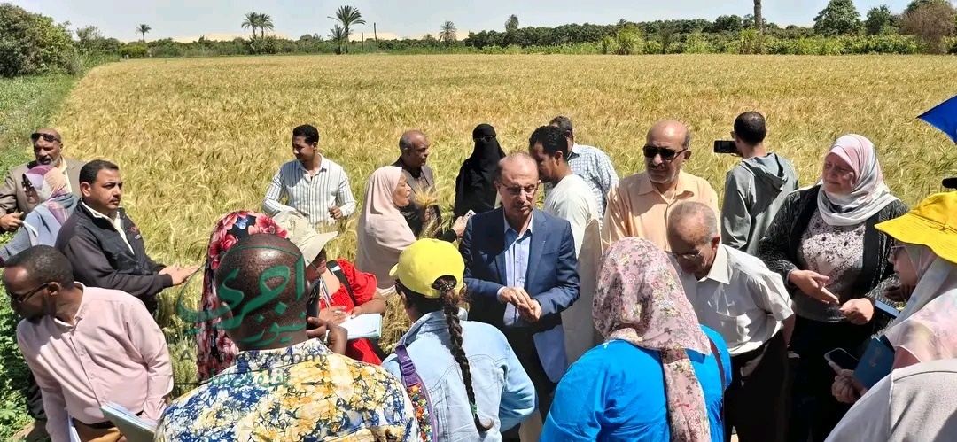 توجه الوفد إلى حقول القمح بأرض المزارع محمد محمود حسن، بمنطقة طوسون التابعة للإدارة الزراعية بمركز الإسماعيلية، حيث تم الاطلاع على أحدث الممارسات الزراعية في إنتاج القمح، أحد أهم المحاصيل الاستراتيجية في مصر.