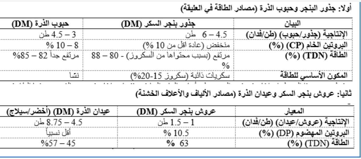 أولا: جذور البنجر وحبوب الذرة (مصادر الطاقة في العليقة)