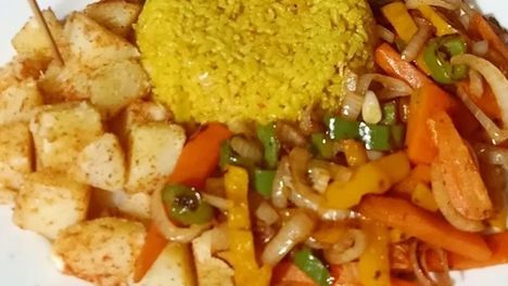 في وصفة منزلية سريعة، يمكن إعداد طبق غني يجمع بين الأرز الأصفر والخضار والبطاطس والهمبرجر، ليكون وجبة مشبعة ومناسبة لجميع أفراد الأسرة خلال وقت قصير لا يتجاوز نصف ساعة.