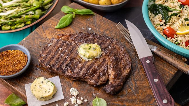 في مقلاة كبيرة على نار عالية، سخني ملعقة كبيرة من الزبدة أو الزيت، ثم أضيفي شرائح اللحم وقلبيها بسرعة حتى تتغير لونها (لا تتركيها تنضج تمامًا). انقلي اللحم جانبًا.