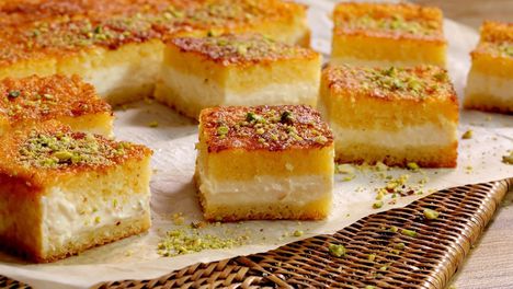 البسبوسة من أشهر الحلويات في المطبخ العربي، ويعود أصلها إلى المطبخ الشامي والمصري، حيث يعتمد أساسها على السميد.