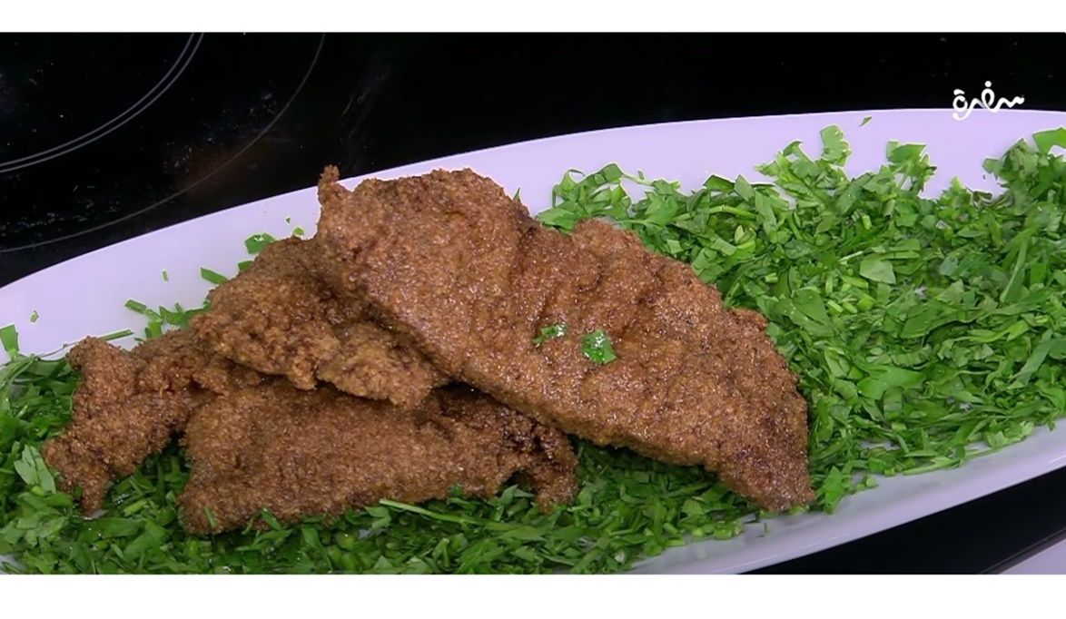 التغطية بالردة: غمسي كل قطعة كبدة في البيض المخفوق ثم في الردة لتغطيتها بالكامل.