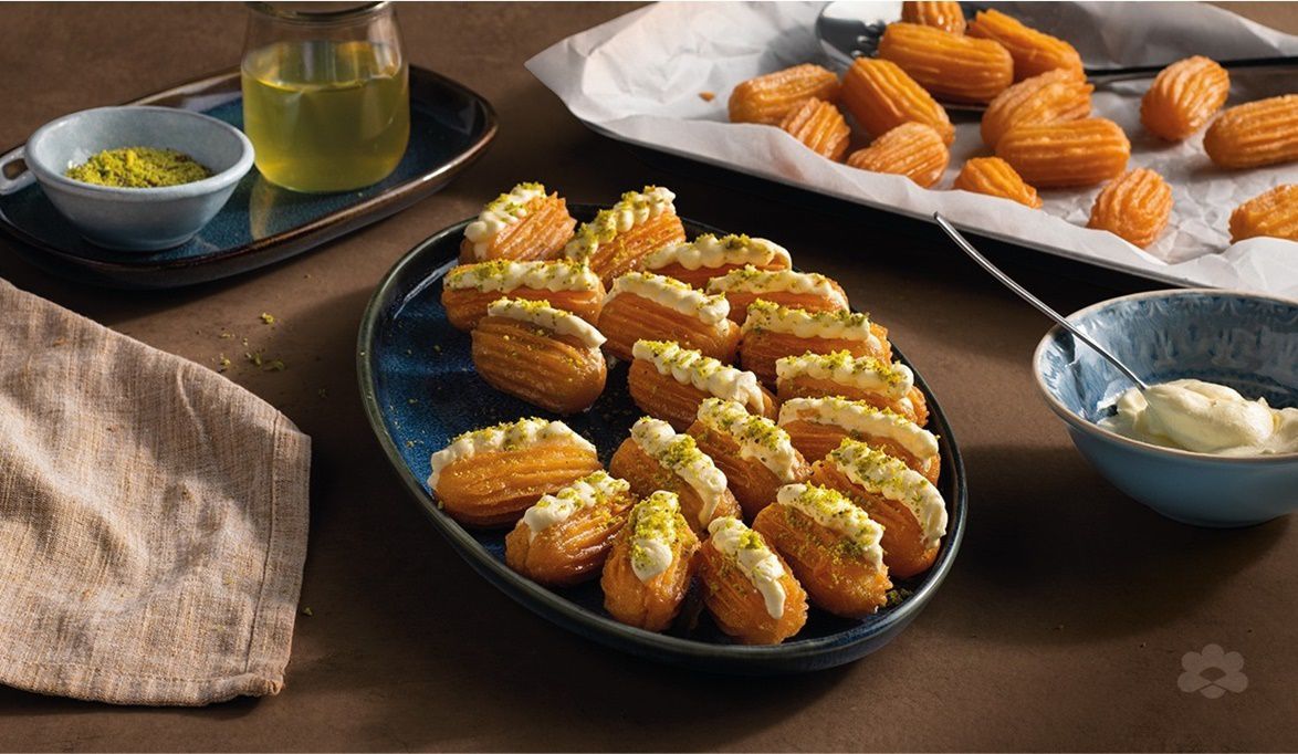 يعتبر بلح الشام بالقشطة من أشهر الحلويات الشرقية التي يتم تقديمها بكثرة على موائد الإفطار في شهر رمضان، حيث يجمع بين القوام المقرمش من الخارج والحشوة الناعمة من القشطة.