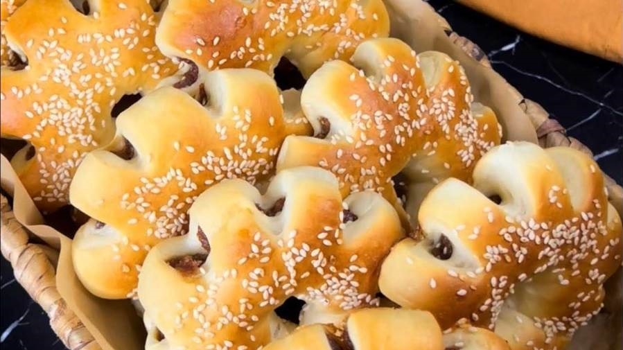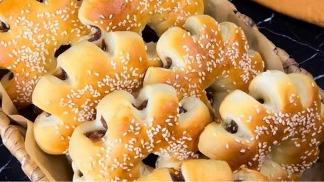 - رُصّي الفطائر في صينية، وادهني الوجه بالحليب ورشي السمسم.