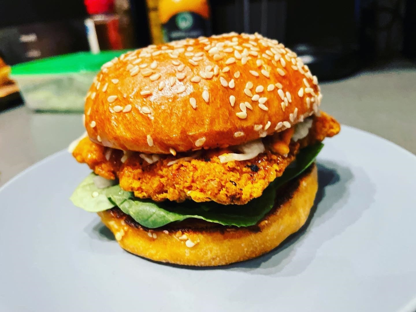 يمكن إعداد الساندويش بسهولة في المنزل خلال 40 دقيقة فقط، حيث يتم تتبيل الدجاج بالبهارات والبابريكا والشطة، ثم قليه حتى الحصول على قوام ذهبي ومقرمش.تقديمه بأسلوب عصري