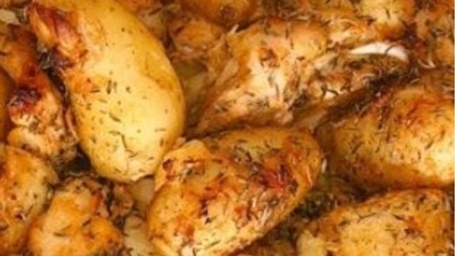 اخبزي الدجاج لمدة 35-40 دقيقة، مع تقليب القطع مرة أو مرتين لضمان تحمير متساوٍ.