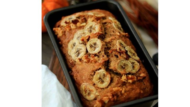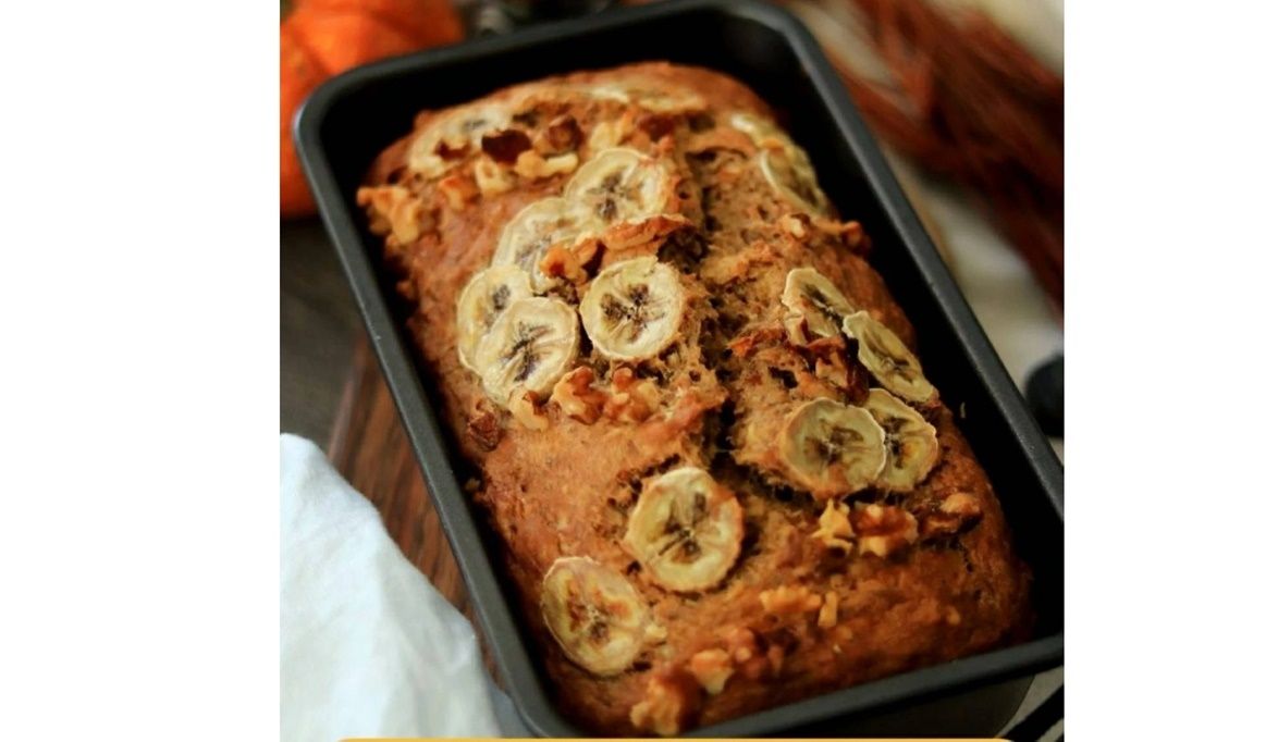 اخبزي خبز الموز، واتركيه يبرد، ثم قطعيه إلى شرائح وقدميه.