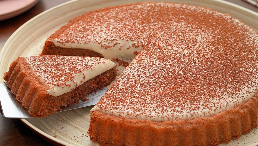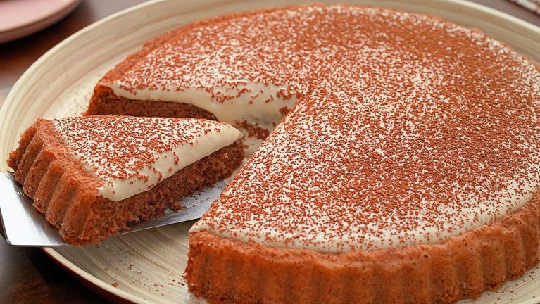اسقي الكيك جيدًا بخليط الحليب والقهوة.وزعي الكريمة بالتساوي على الوجه.