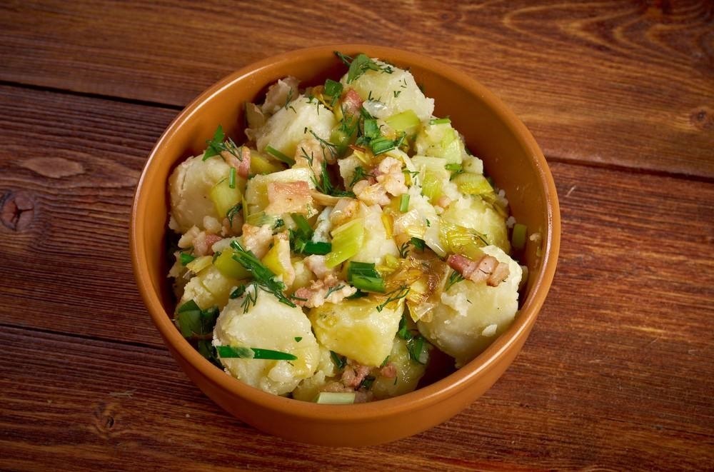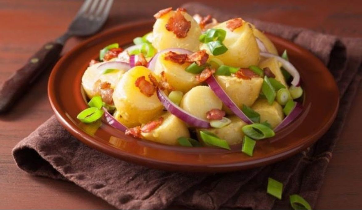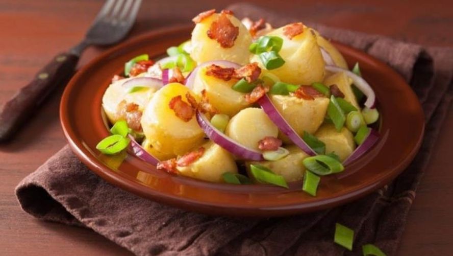 سلطة البطاطس الألمانية من الأطباق الجانبية اللذيذة والمشهورة بمذاقها المميز، حيث تمتزج فيها نكهة البطاطس المسلوقة مع التتبيلة الغنية التي تضيف طعماً رائعاً. تُعد هذه السلطة خياراً مثالياً لتقديمها بجانب المشويات أو الأطباق الرئيسية، كما تتميز بسهولة تحضيرها ومكوناتها البسيطة.