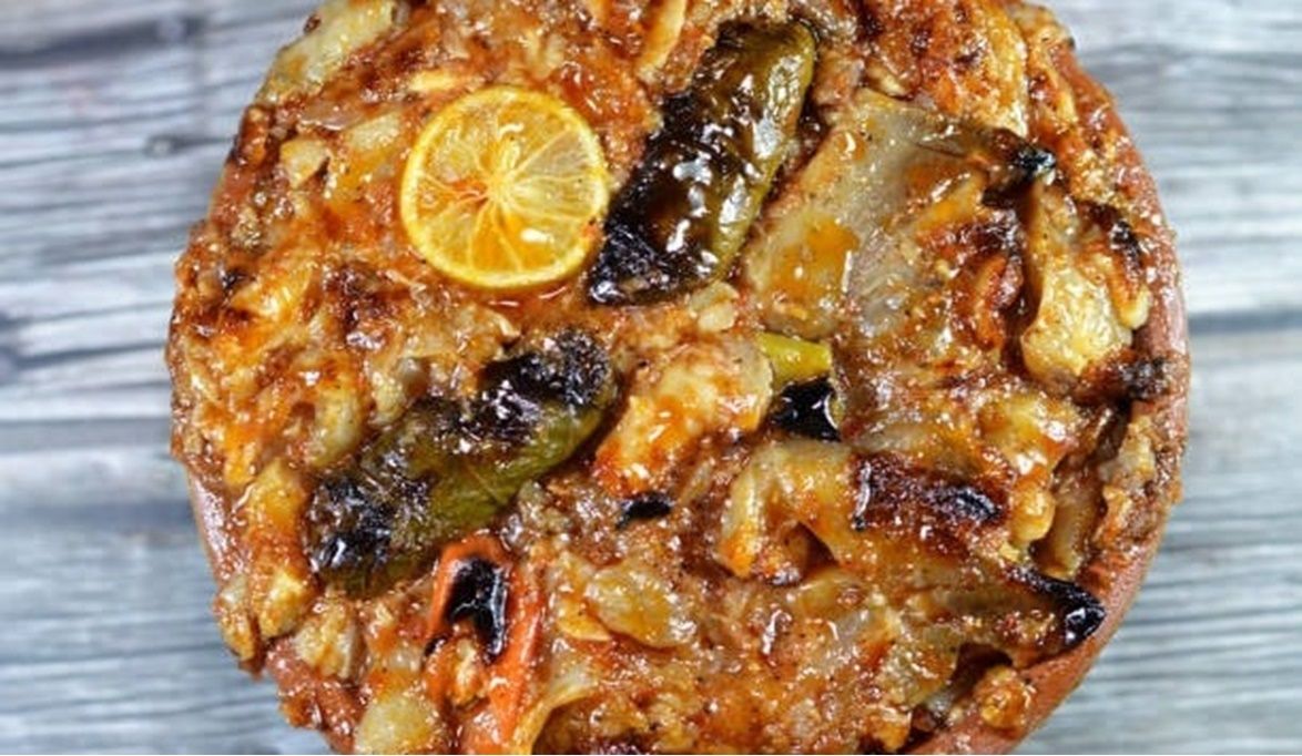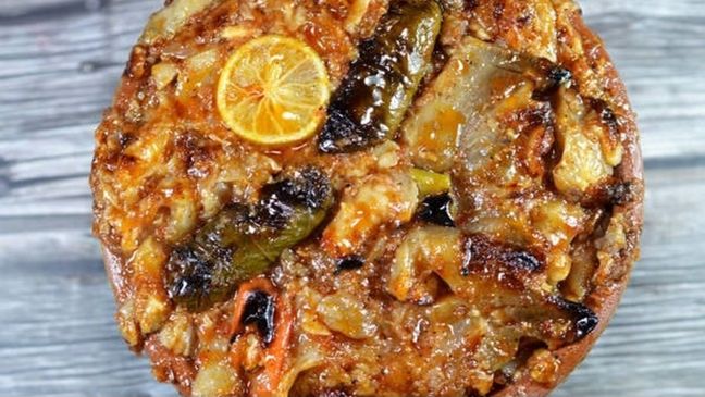- يغطى الطاجن بإحكام، ويوضع في الفرن على درجة حرارة متوسطة، ويترك حتى ينضج الأرز تمامًا وتمتزج النكهات.