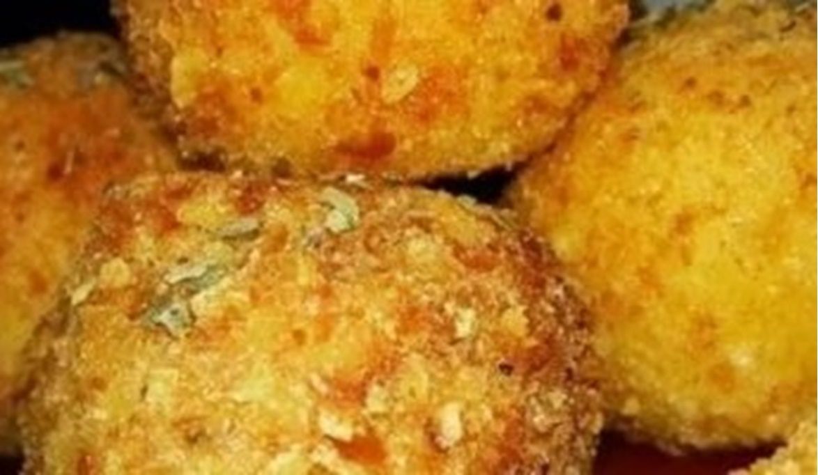 قومي بتشكيل خليط البطاطس إلى كرات صغيرة، وفي داخل كل كرة ضعي قطعة من جبن الموتزاريلا.