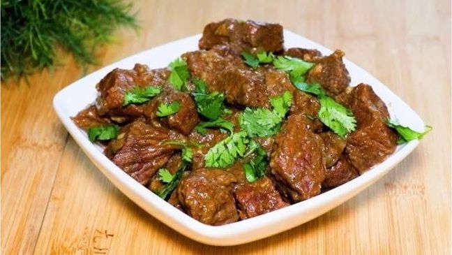 اللمسة الأخيرة: عند اقتراب اللحم من النضج الكامل، يُضاف الملح والثوم المفروم والفلفل الأخضر حسب الرغبة، وتُترك الحلة لبضع دقائق حتى يتكثف الصوص ويصبح غنيًا ومتجانسًا.